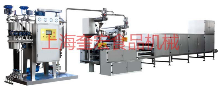 1:PLC編程自動控制真空熬糖溫度、時間、澆注溫度和澆注速度; 2:大LED觸摸屏顯示易于操作; 3:生產能力可達每小時150公斤到600公斤; 4:變頻調整控制糖液流量; 5:衛生結構設計; 6:連續性真空熬糖使熬糖溫度達到糖漿澆注標準; 7:在線完成香精、色素、酸液的定量加注混合; 8:輸送鏈帶和冷卻系統保證脫模; 9:根據模具的不同可生產各種形狀的糖果; 10:可生產單色、夾心、雙色噴花、雙層等硬糖; 11:安裝插棒裝置可生產棒棒糖;